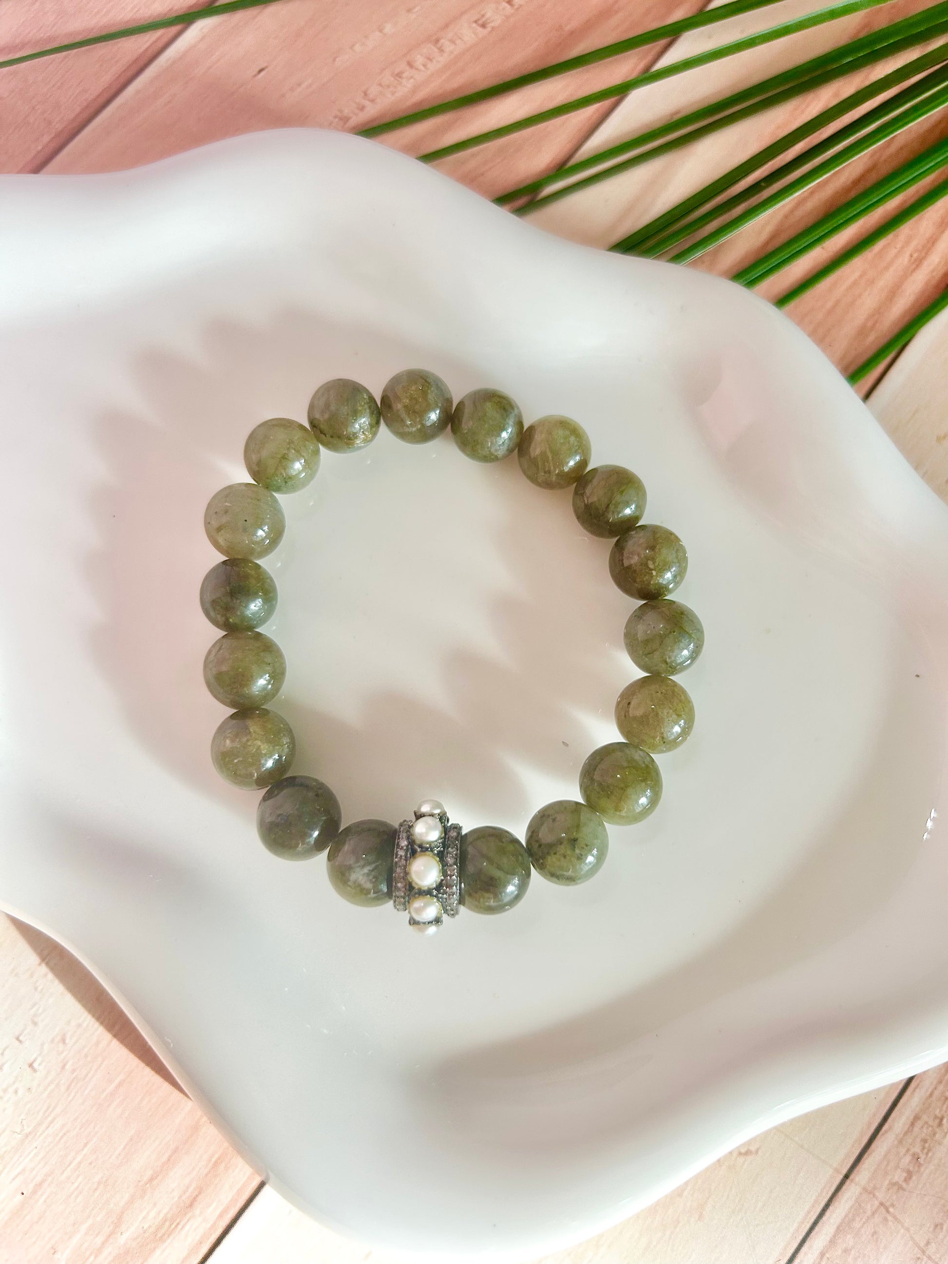 Kata, short for Kataoka, our founders last name, this stretch bracelets gives inner strength to the wearer. Popular for its' mesmerizing dark green tones, Labradorite is a well known stone for healing and alignment.