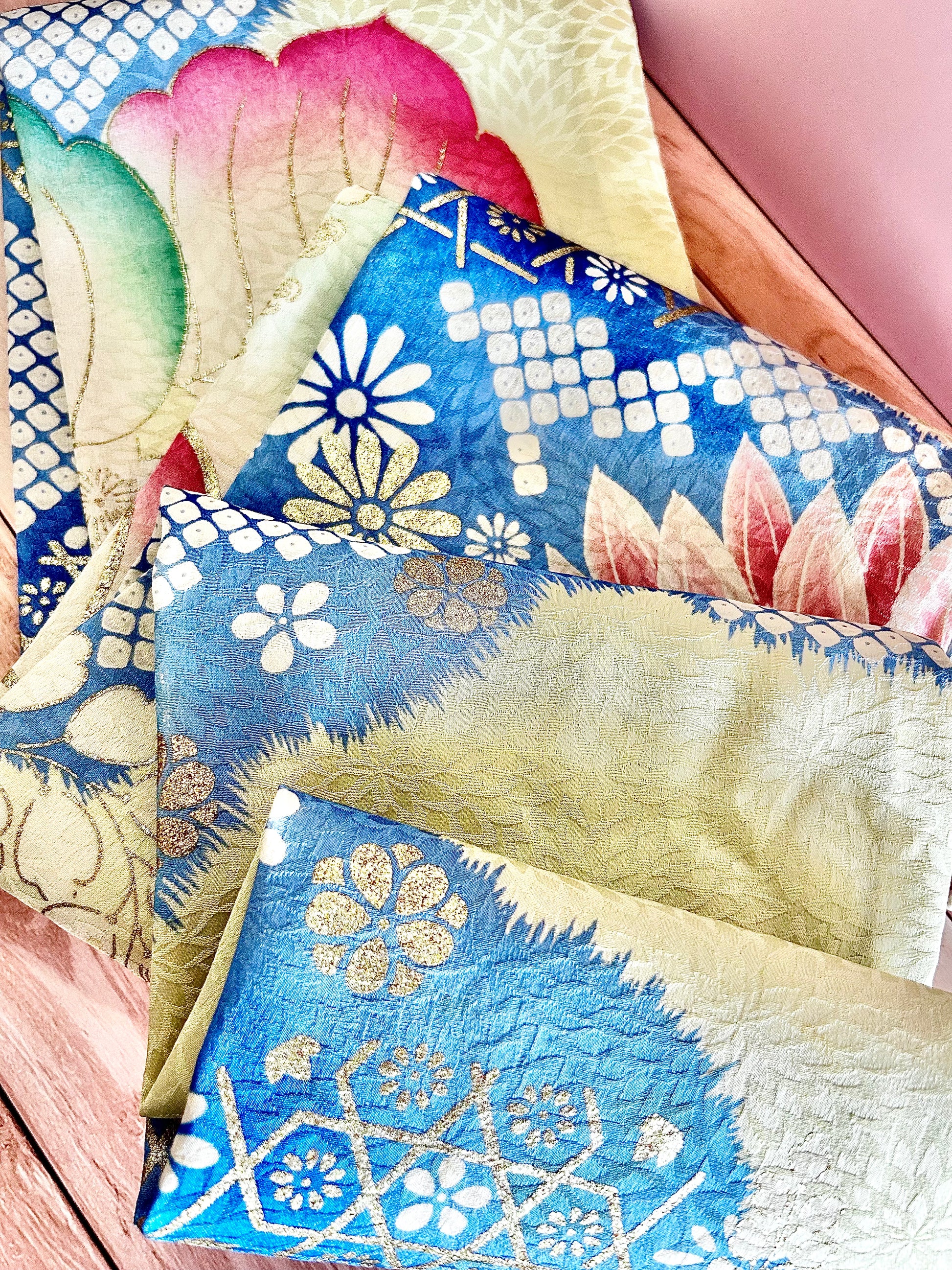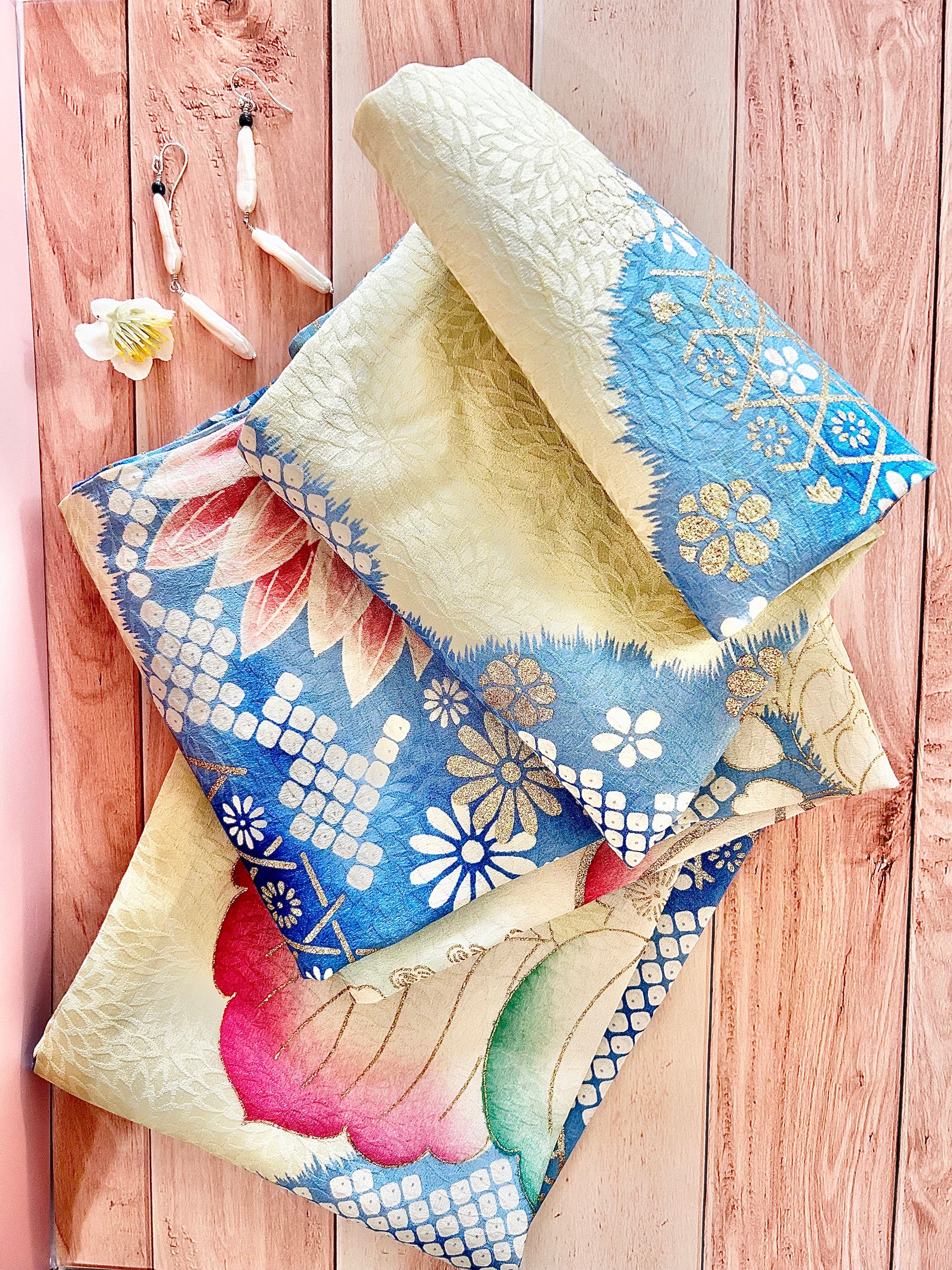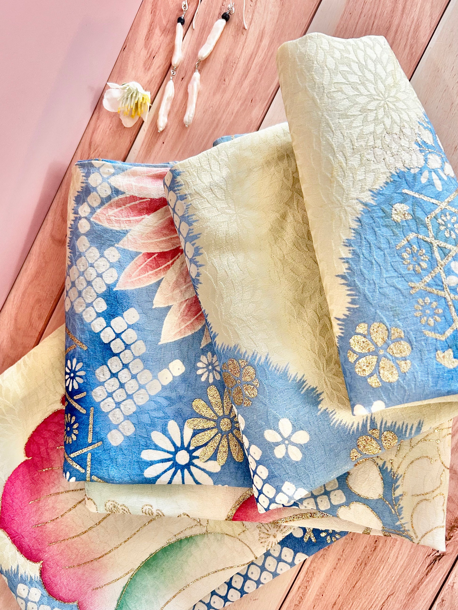 Serene hues of light blue, pink and green this scarf is a beautiful, dainty accessory for when you want just a little something extra.
