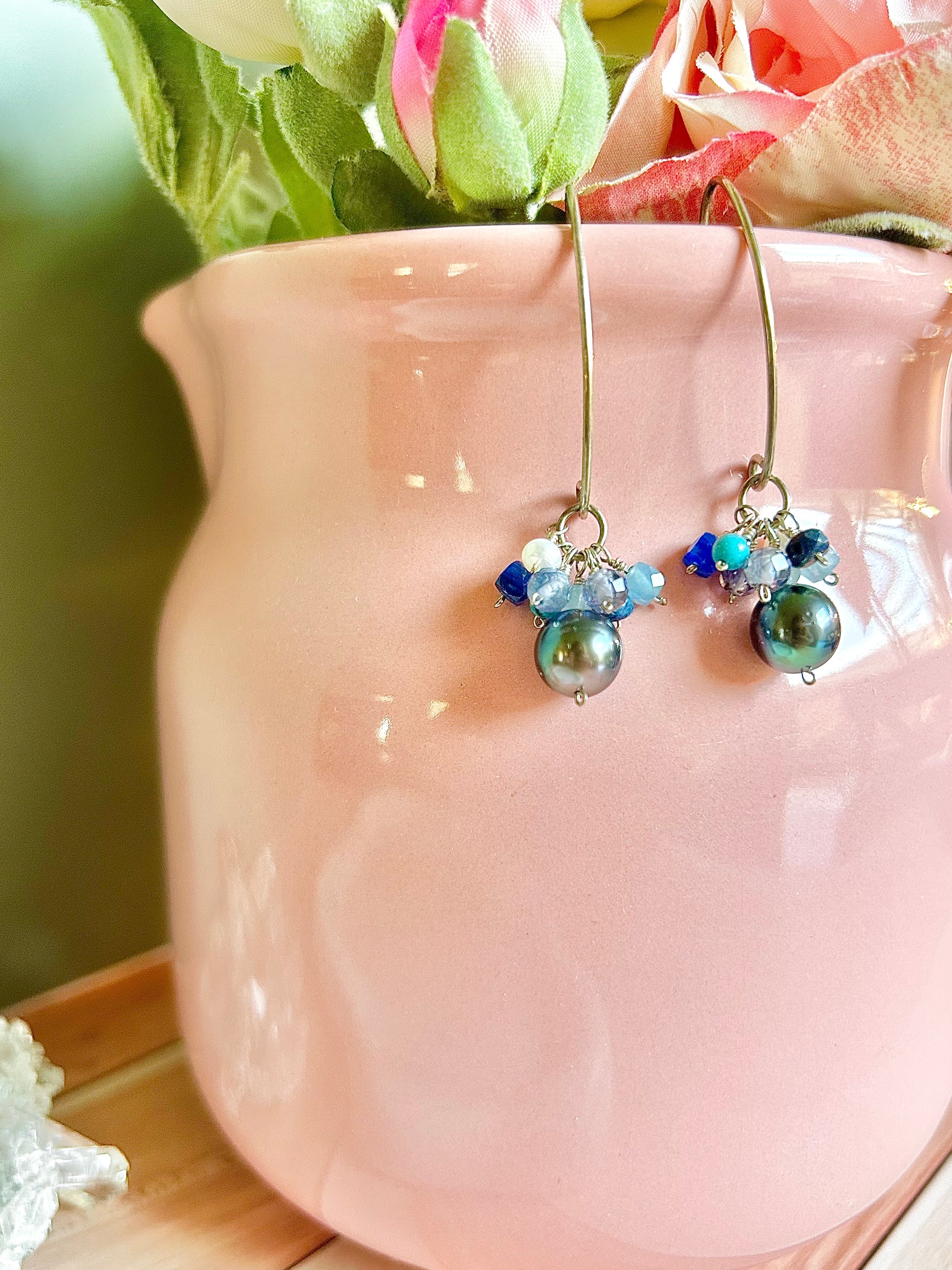Be bold & colorful, we encourage it. Match your confidence with this dazzling pair of earrings adorned with bright blue hues and one lustrous Tahitian Pearl.