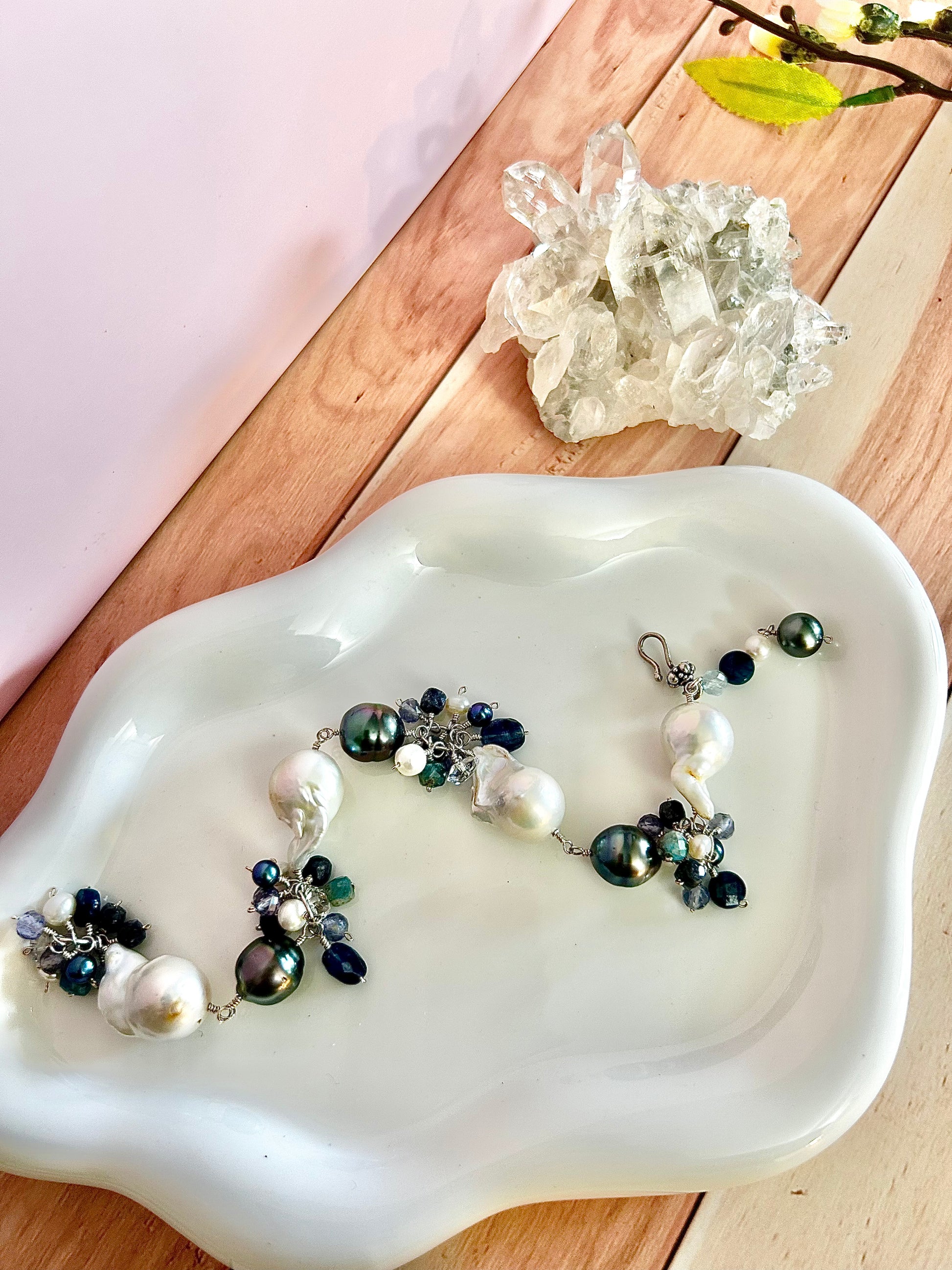 *Gem cascade: london blue topaz, iolite, pearls, herkimer diamonds, apatite